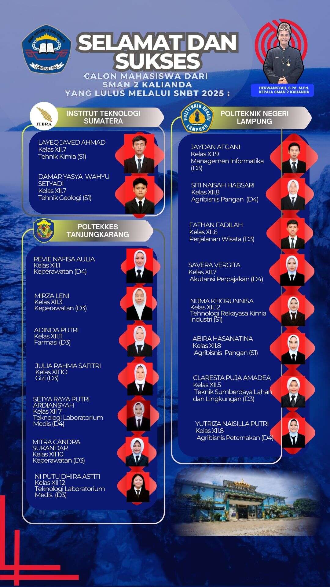 Siswa SMAN 2 Kalianda Tahun 2025 yang diterima jalur SNBT